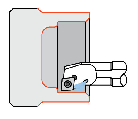 • Coolant through boring bar for right hand boring and facing with 5° approach (lead) angle