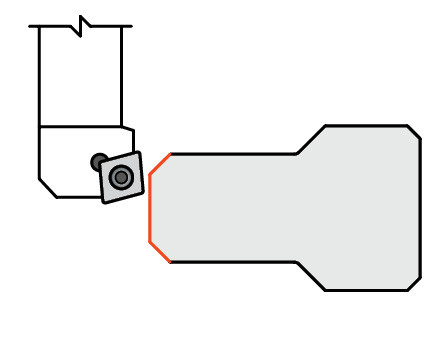 • 75° facing and chamfering holder utilizing 100° unused left hand cutting edge of insert