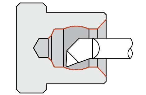 The top rake geometry of this Micro 100 solid carbide Boring Tool provides freer cutting, while its lockdown flat automatically locates the tool on center.