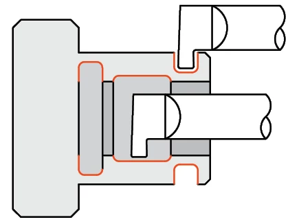 Optimized with a corner radius profile for extended tool life and finished groove profiling operations, Micro 100's right hand retaining ring grooving tools are designed for use in bores .205" and larger. This tool is engineered with a polished split face for improved chip evacuation and edge retention, and reduced galling.